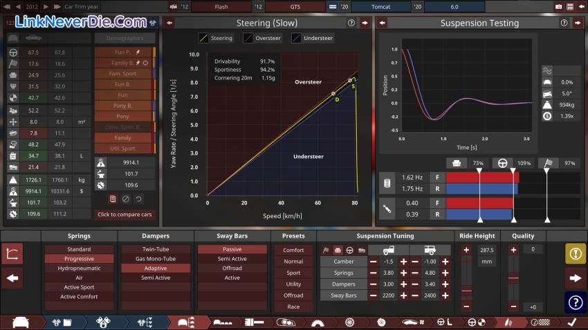 Automation’s Campaign Mode starts in 1946, where players test their design skills in a deep simulation of the automotive industry. Build factories and equip them with the facilities and equipment they need, and research cutting-edge technologies to turn your fledgling company into a titan of the industry, by catering to the needs and desires of dynamically-simulated market demographics.